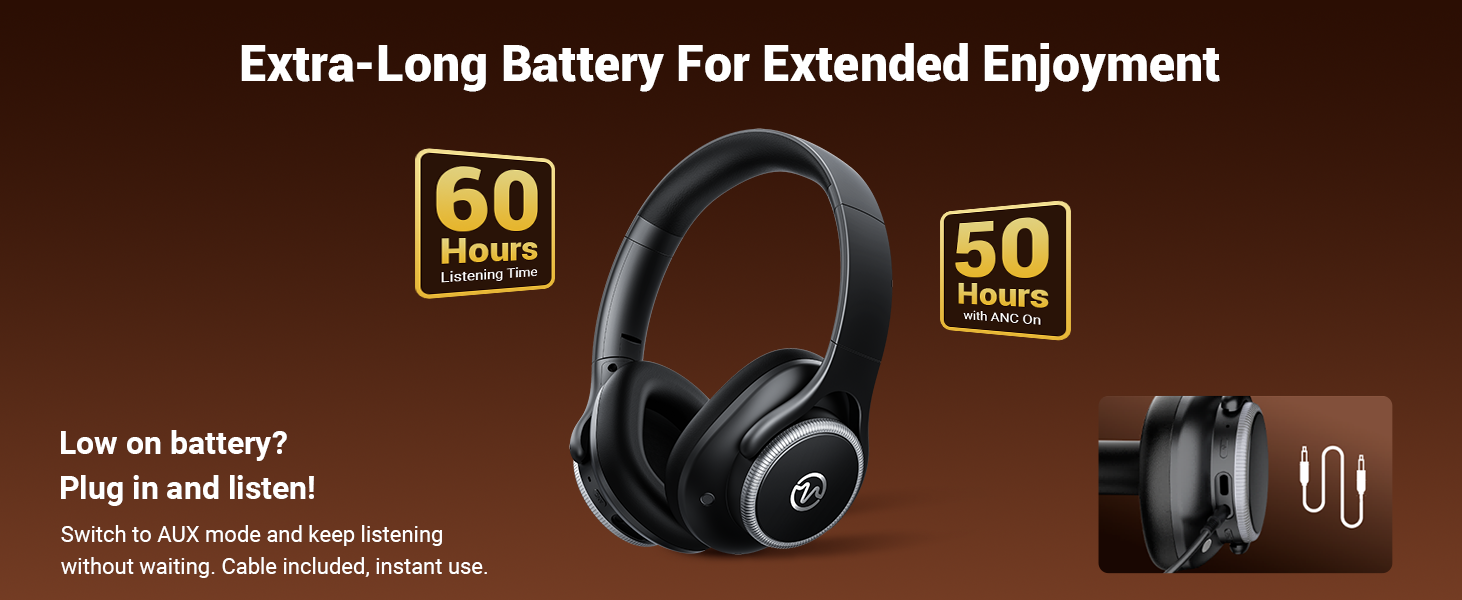 - Extended Playtime: Enjoy up to 60 hours of audio playback (50 hours with ANC) from an 800mAh battery, with a quick charge feature providing 5 hours of use from a 10-minute charge.